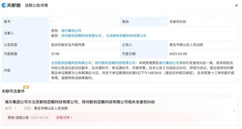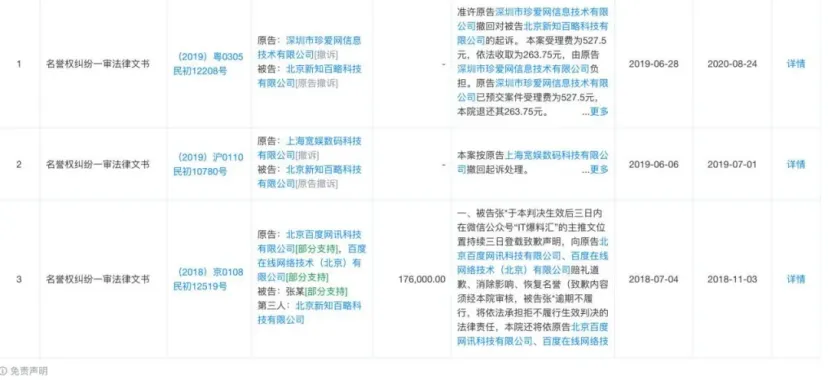 公開信息顯示,新知百略和張某此前曾多次被企業(yè)起訴名譽(yù)權(quán)侵權(quán),包括海爾、百度等,并曾被法院判決認(rèn)定構(gòu)成侵權(quán),判令其道歉和消除影響。