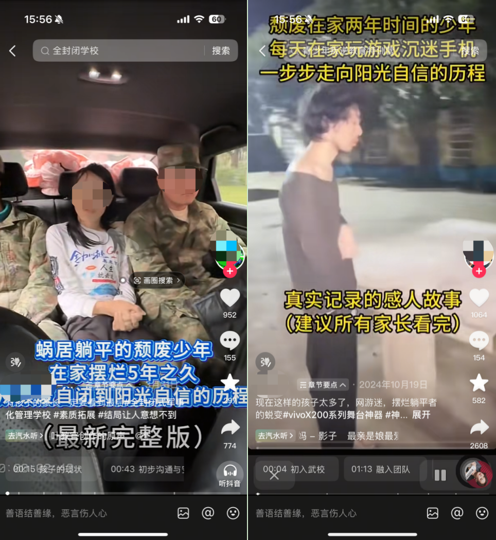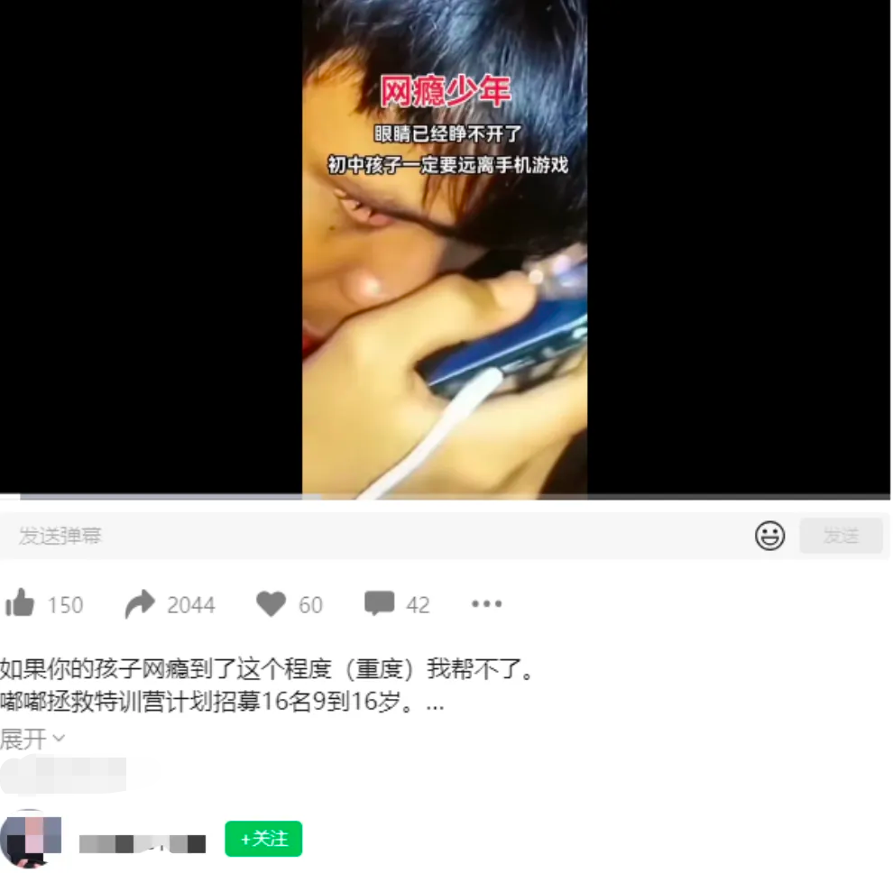 自詡“教育專家”“特訓(xùn)教官”的網(wǎng)紅博主們,用同樣的話術(shù),歇斯底里地控訴游戲,呼吁國家全面禁止游戲,刻意炮制萬千家長們希望孩子戒掉網(wǎng)癮、遠(yuǎn)離游戲沉迷的焦慮,贏得了不少家長的點贊和轉(zhuǎn)發(fā),當(dāng)然,還有消費;他們販賣的新型“戒網(wǎng)癮學(xué)校”“暑假特訓(xùn)營”“課程”動輒幾萬元,這些機構(gòu)提出的希望令家長們無法拒絕——“還您一個好孩子”。