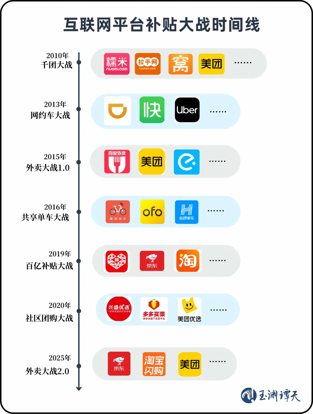 從這張圖上就能看到,每隔一段時(shí)間,互聯(lián)網(wǎng)平臺(tái)就會(huì)在一些領(lǐng)域發(fā)起新的“大戰(zhàn)”。