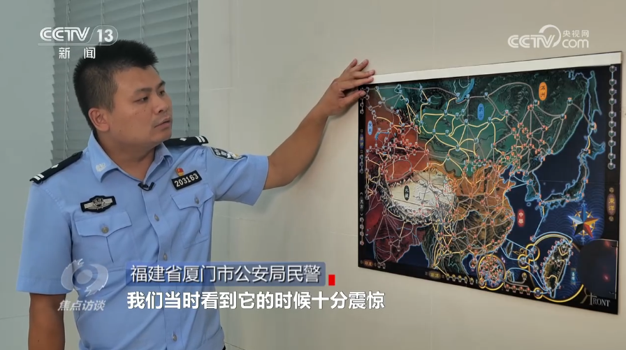 福建省廈門市公安局民警:“這款桌游我們看到的時候十分震驚,它把整個中華大地,長城以外標注為‘蒙古’,把新疆及西北地區(qū)標注為‘突厥’,把西南地區(qū)標注為‘大藏’,山海關(guān)以外稱為‘滿洲’。它不僅把中華大地蓄意割裂,而且演繹了各種境外分裂勢力圍剿‘紅軍’,比如‘8月15日殺共匪’。類似這樣的桌游,多數(shù)都是(臺灣)青少年在玩,極大扭曲青少年的思想認知,體現(xiàn)了極端的分裂思想?!?/p>