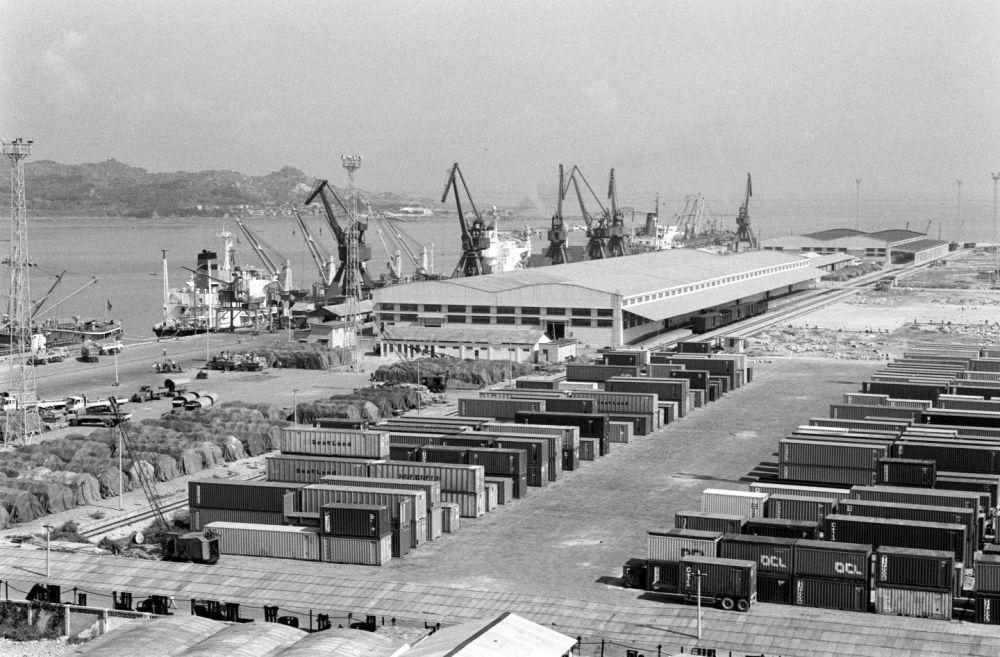 這是廈門經濟特區(qū)東渡碼頭集裝箱碼頭(1985年攝)。新華社記者 顧新生 攝