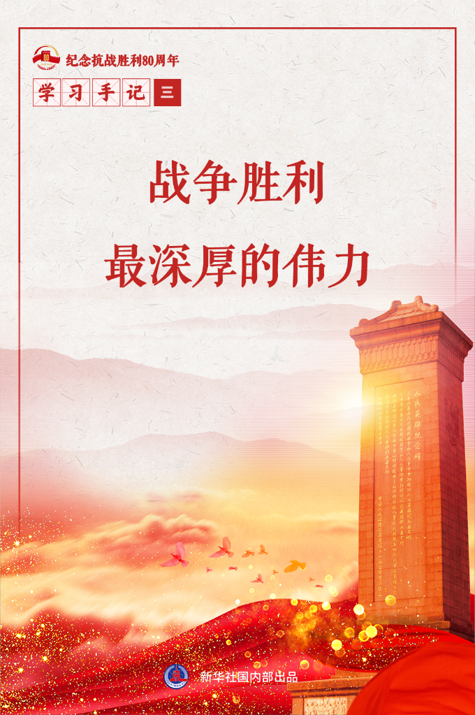 民族危亡之際,中國人民迸發(fā)出勢不可擋的力量。中國人民抗日戰(zhàn)爭勝利是全體中華兒女勠力同心、以弱勝強的雄渾史詩,顯示了中國人民和中華兒女堅不可摧的磅礴力量。