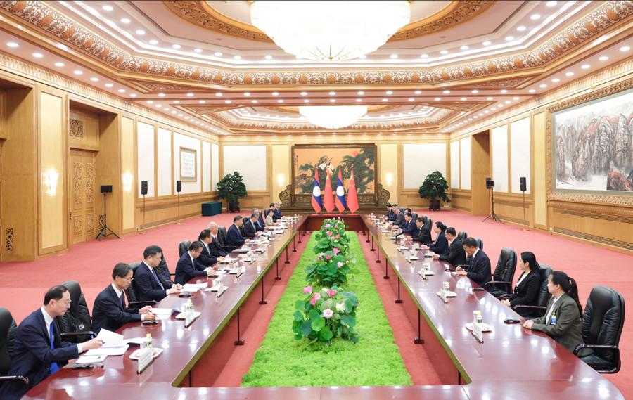 9月4日上午,中共中央總書(shū)記、國(guó)家主席習(xí)近平在北京人民大會(huì)堂會(huì)見(jiàn)來(lái)華出席2025年上海合作組織峰會(huì)和紀(jì)念中國(guó)人民抗日戰(zhàn)爭(zhēng)暨世界反法西斯戰(zhàn)爭(zhēng)勝利80周年活動(dòng)并進(jìn)行工作訪問(wèn)的老撾人民革命黨中央總書(shū)記、國(guó)家主席通倫。