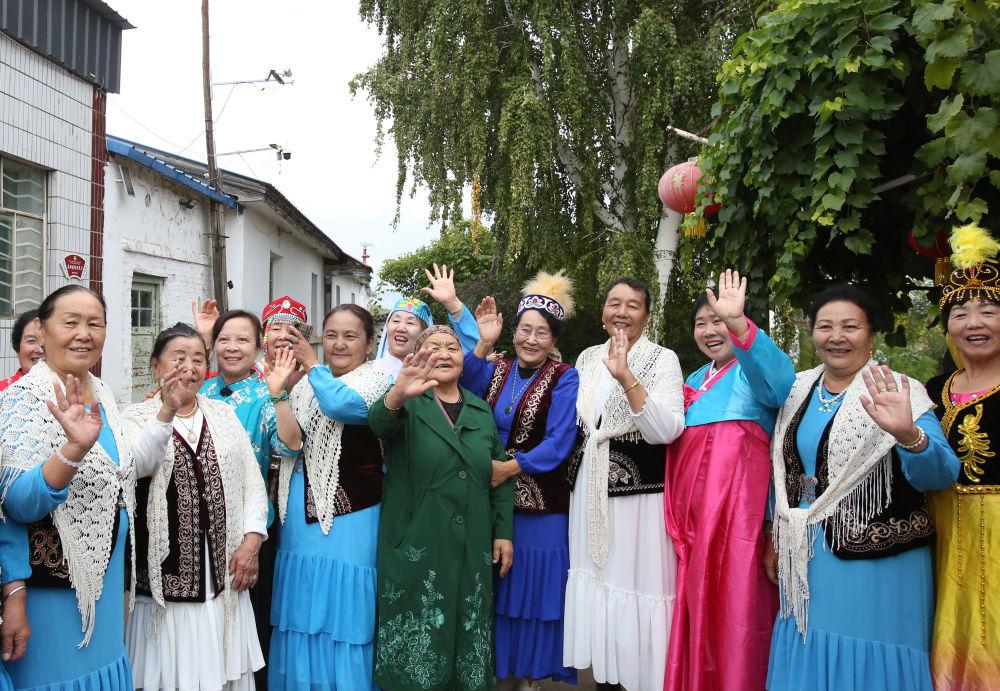 2025年9月9日,新疆阿勒泰地區(qū)阿勒泰市紅墩鎮(zhèn)的老人在“戶兒家”文化大院合影,該鎮(zhèn)居民由漢族、哈薩克族、維吾爾族、蒙古族等11個(gè)民族組成。“戶兒家”源于清末,是哈薩克族對(duì)甘肅、山西、陜西等省遷居紅墩鎮(zhèn)的40戶漢族居民的稱呼。100多年來,“戶兒家”幾代人與各族群眾相互融合、共同發(fā)展,成為各民族相互交融的典范。