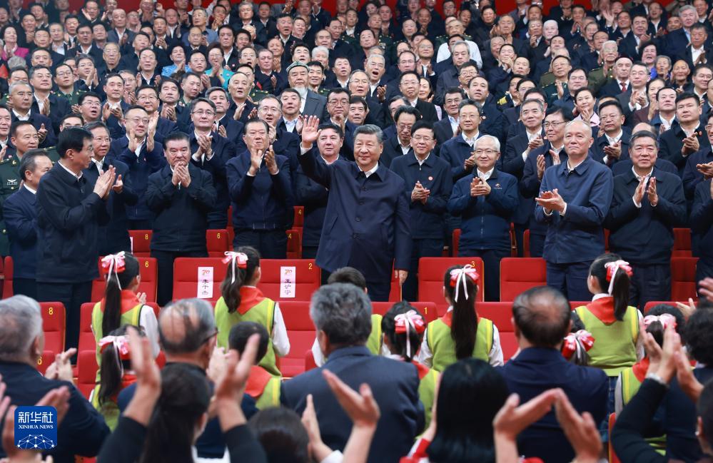 王滬寧、蔡奇、李干杰、何立峰、王小洪、雪克來提·扎克爾、諶貽琴、王東峰和劉振立,在新疆工作過的老同志,以及中央和國家機關有關部門負責同志、中央代表團全體成員一同觀看演出。