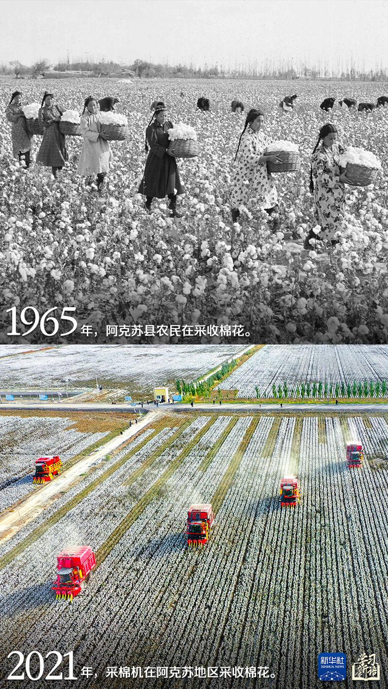 我們選取成就展上的一組照片,通過(guò)新舊對(duì)比,用鮮活的事實(shí)展現(xiàn)新疆取得的輝煌成就,一起感受翻天覆地的發(fā)展變化。