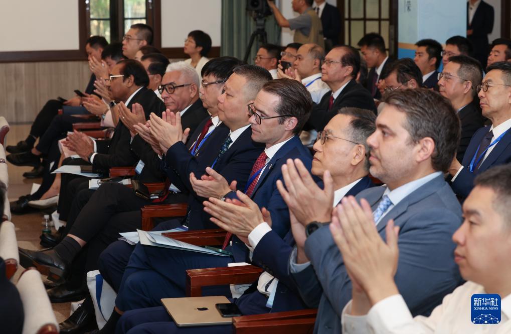 9月27日,新華社國家高端智庫在廣州召開的習(xí)近平文化思想國際學(xué)術(shù)研討會上,面向全球發(fā)布《文明發(fā)展論——構(gòu)建以發(fā)展為核心的新型文明觀》智庫報告。這是中外學(xué)者參加研討會。新華社記者 劉大偉 攝