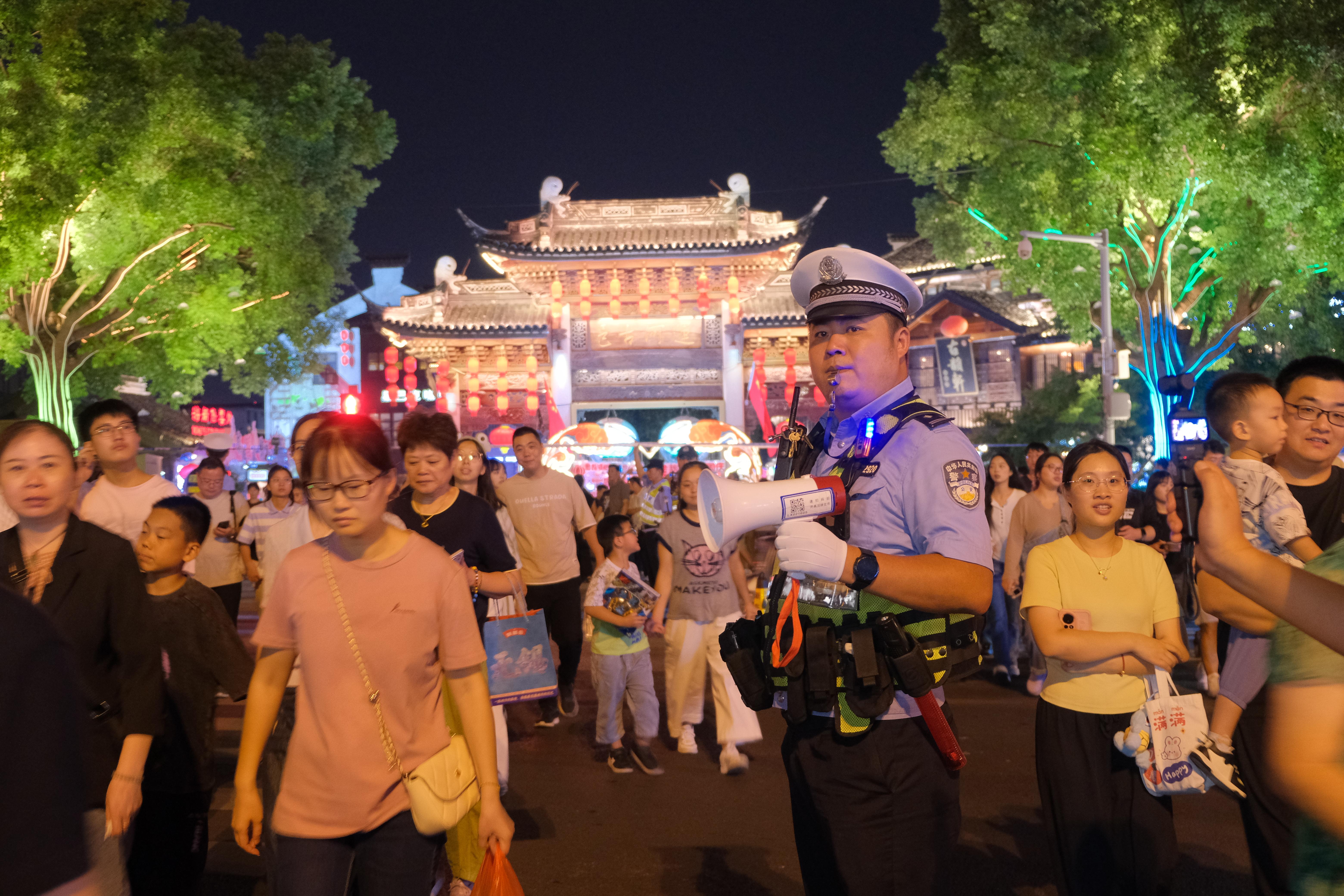 粉墻黛瓦的惠山古鎮(zhèn),飄揚(yáng)的國旗與廊下燈籠交相輝映,吸引眾多游客紛至沓來。“拍照時(shí)注意隨身物品,留意身后?!?0月3日,梁溪公安分局惠山派出所民警正在景區(qū)巡邏,時(shí)刻關(guān)注著繡嶂街、祠堂群等人流密集區(qū)域,不時(shí)提醒身邊游客。