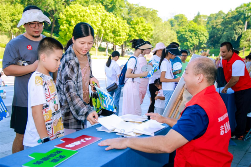 活動(dòng)中,市民游客持打卡地圖,通過找金句、抽場景、實(shí)地考察等方式,積極打卡并回答問題。本次闖關(guān)答題活動(dòng)內(nèi)容從深圳民法公園和民法博物館的法治景觀寓意出發(fā),結(jié)合生活實(shí)際案例,向市民游客普及民法典中物權(quán)、合同、人格權(quán)等各編知識(shí),市民在答題過程中,深入體會(huì)民法公園“一園三館”所蘊(yùn)含的法治精神,使公園各個(gè)區(qū)域從靜態(tài)的展示空間轉(zhuǎn)變?yōu)閯?dòng)態(tài)的普法教育平臺(tái),現(xiàn)場市民游客參與熱情高漲。
