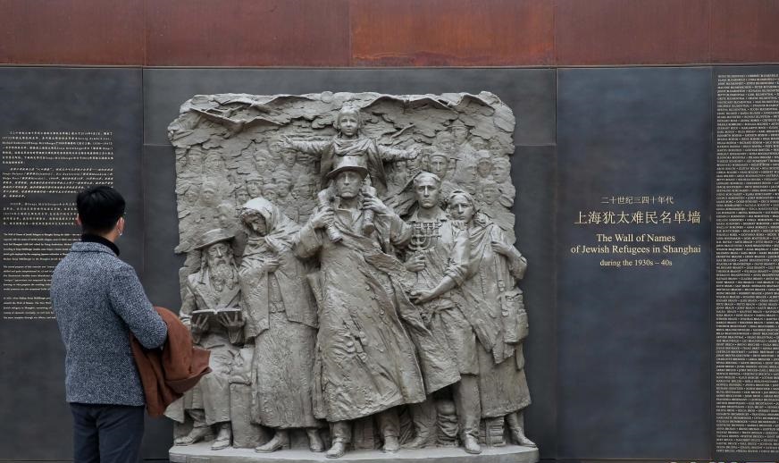 12月8日,觀眾在上海猶太難民紀(jì)念館廣場(chǎng)參觀上海猶太難民名單墻。