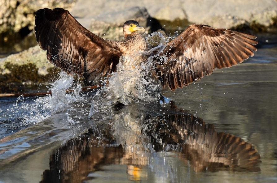 12月20日,一只鸕鶿在科威特杰赫拉省海邊覓食。新華社發(fā)(加齊攝)