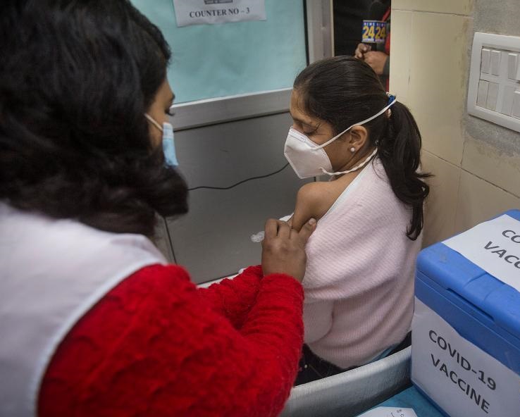 1月6日,在印度新德里的一個疫苗接種點,醫(yī)護人員和志愿者參加疫苗接種演練。
