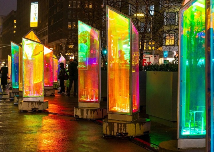 人民網(wǎng)訊 當(dāng)?shù)貢r(shí)間1月26日,美國(guó)紐約百老匯大道,街頭放置“棱鏡”燈光裝置,五彩繽紛猶如萬花筒,行人紛紛駐足觀看。