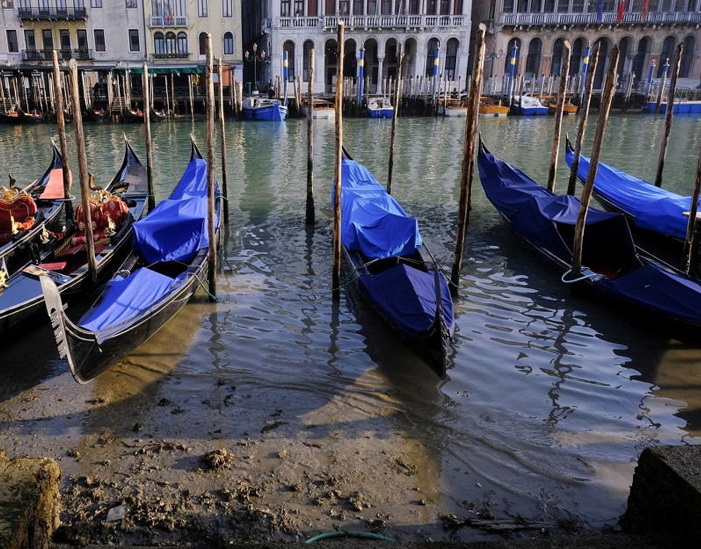 人民網(wǎng)訊 當(dāng)?shù)貢r間2月26日,意大利威尼斯,由于罕見“低潮”,“水城”威尼斯運河水位下降,使得不少河道河床暴露,影響威尼斯交通和航運,導(dǎo)致當(dāng)?shù)刂饕煌üぞ哓暥嗬瑪R淺在淤泥中。