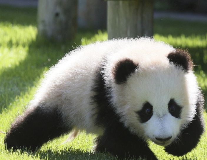 當(dāng)?shù)貢r(shí)間4月7日,日本和歌山縣白濱町娛樂設(shè)施“冒險(xiǎn)世界”,大熊貓寶寶“楓浜”正在曬日光浴。(圖片來源:東方IC)