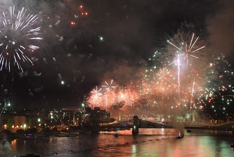 人民網(wǎng)訊 當(dāng)?shù)貢r(shí)間2021年8月20日,匈牙利布達(dá)佩斯,煙花在多瑙河上空燃放,這是慶祝該國國慶節(jié)的一部分。每年的這一天,匈牙利人都會慶祝他們國家的建立,紀(jì)念國家創(chuàng)始人圣斯蒂芬國王。