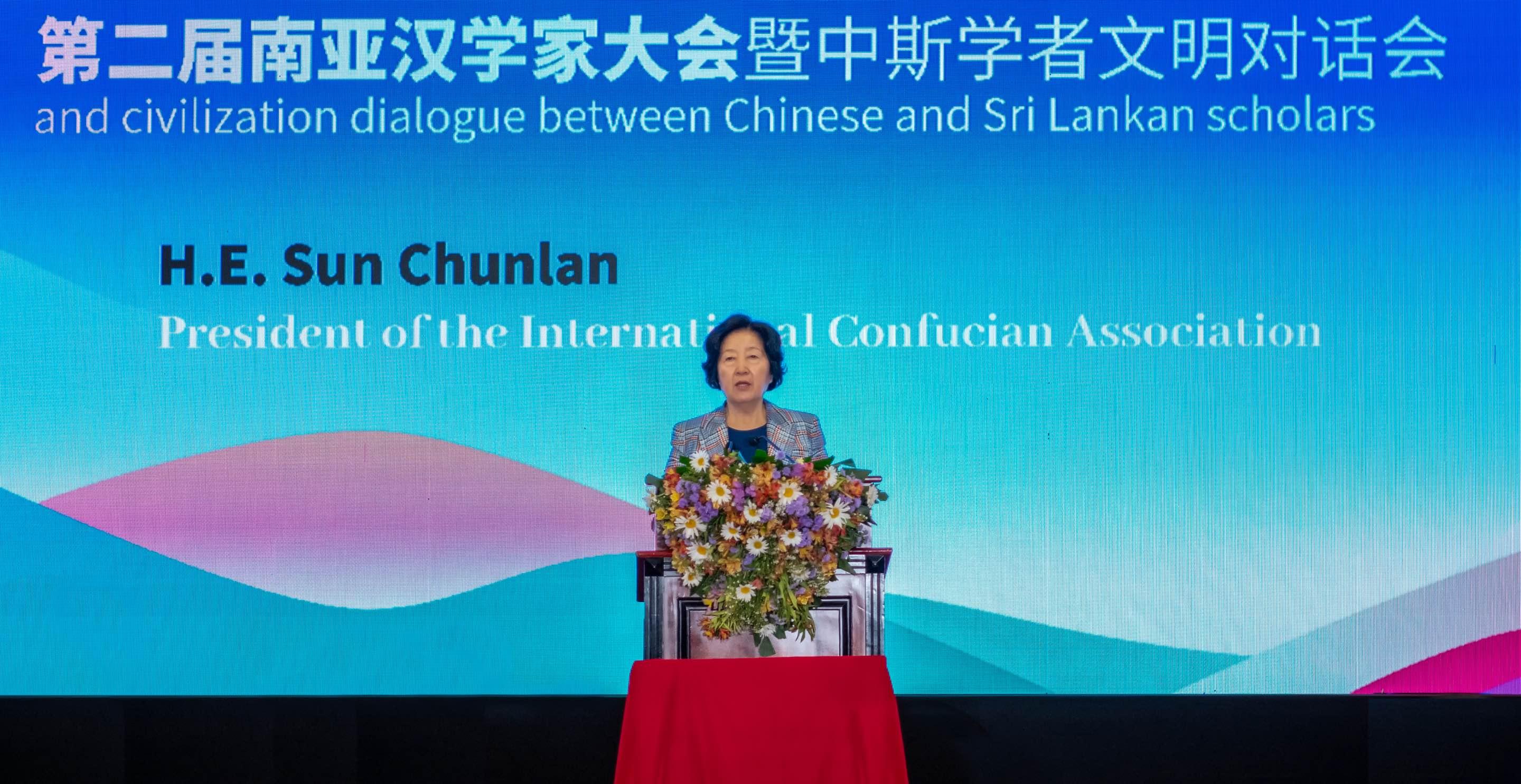 孫春蘭會(huì)長在斯里蘭卡科倫坡出席第二屆南亞 漢學(xué)家大會(huì)暨中斯學(xué)者文明對話會(huì)并致辭