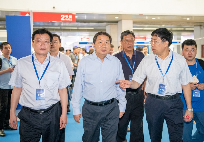 圖為司法部黨組成員、副部長熊選國一行參觀全國政法智能化建設(shè)技術(shù)裝備及成果展。