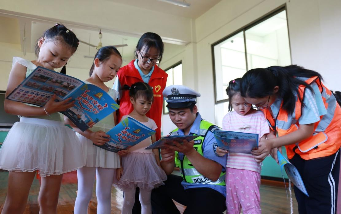 連日來,江西省吉安市遂川縣公安局交警大隊(duì)組織民警和青年志愿者走進(jìn)轄區(qū)暑期興趣班,通過以案說法、知識(shí)問答等方式宣講交通安全知識(shí),引導(dǎo)孩子們正確識(shí)別交通標(biāo)志標(biāo)線,提升自我保護(hù)能力。圖為7月23日,民警走進(jìn)暑期興趣班宣講交通安全知識(shí)。