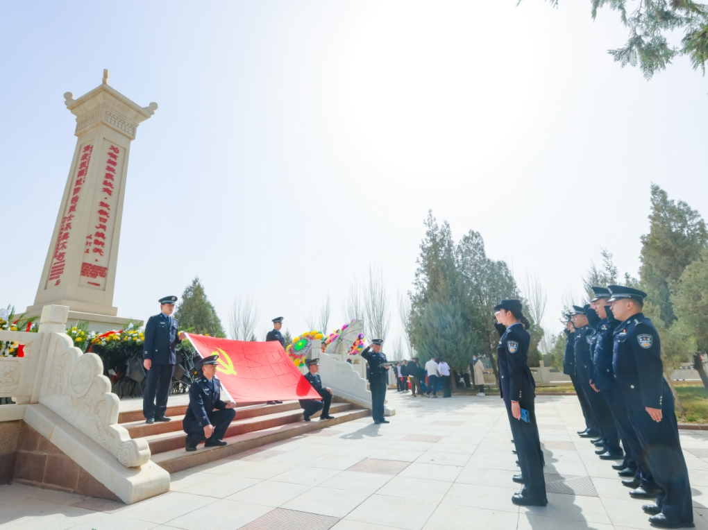 4月2日,新疆喀什邊境管理支隊(duì)組織民警前往疏勒縣烈士陵園祭奠英烈。民警懷著無限哀思獻(xiàn)花、掃墓、向英雄紀(jì)念碑敬獻(xiàn)鮮花,寄托對(duì)烈士的崇敬和思念。