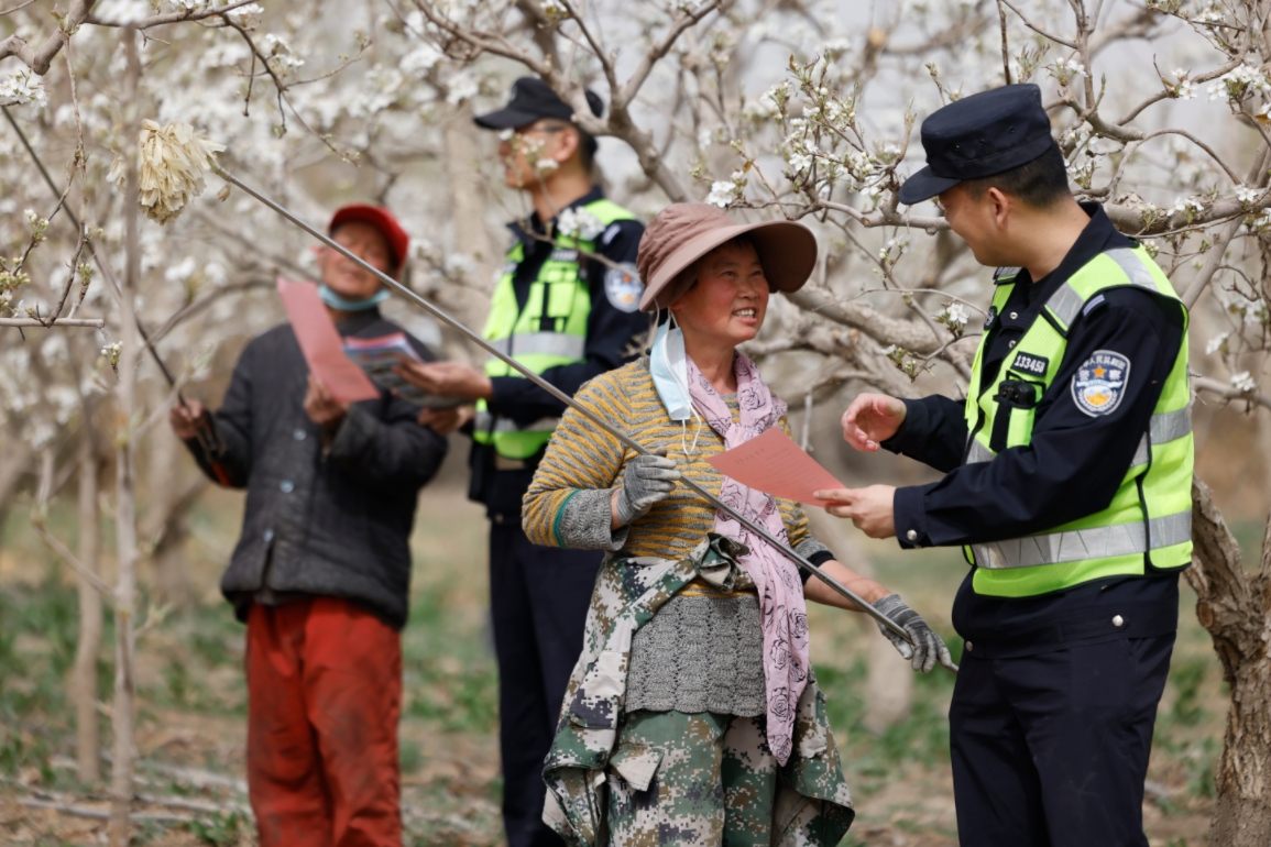 新疆庫爾勒市梨花盛開時節(jié),為進(jìn)一步增強(qiáng)轄區(qū)鐵路沿線居民對鐵路安全知識的了解,提高居民的愛路護(hù)路意識和自我保護(hù)能力,4月14日,庫爾勒鐵路公安處庫爾勒西站派出所民警在轄區(qū)香梨種植園廣泛開展鐵路安全知識宣傳。民警走村入戶,采用向村民及外來務(wù)工人員發(fā)放鐵路護(hù)路宣傳資料、現(xiàn)場講授等方式講解鐵路安全知識,構(gòu)建良好的線路安全環(huán)境。