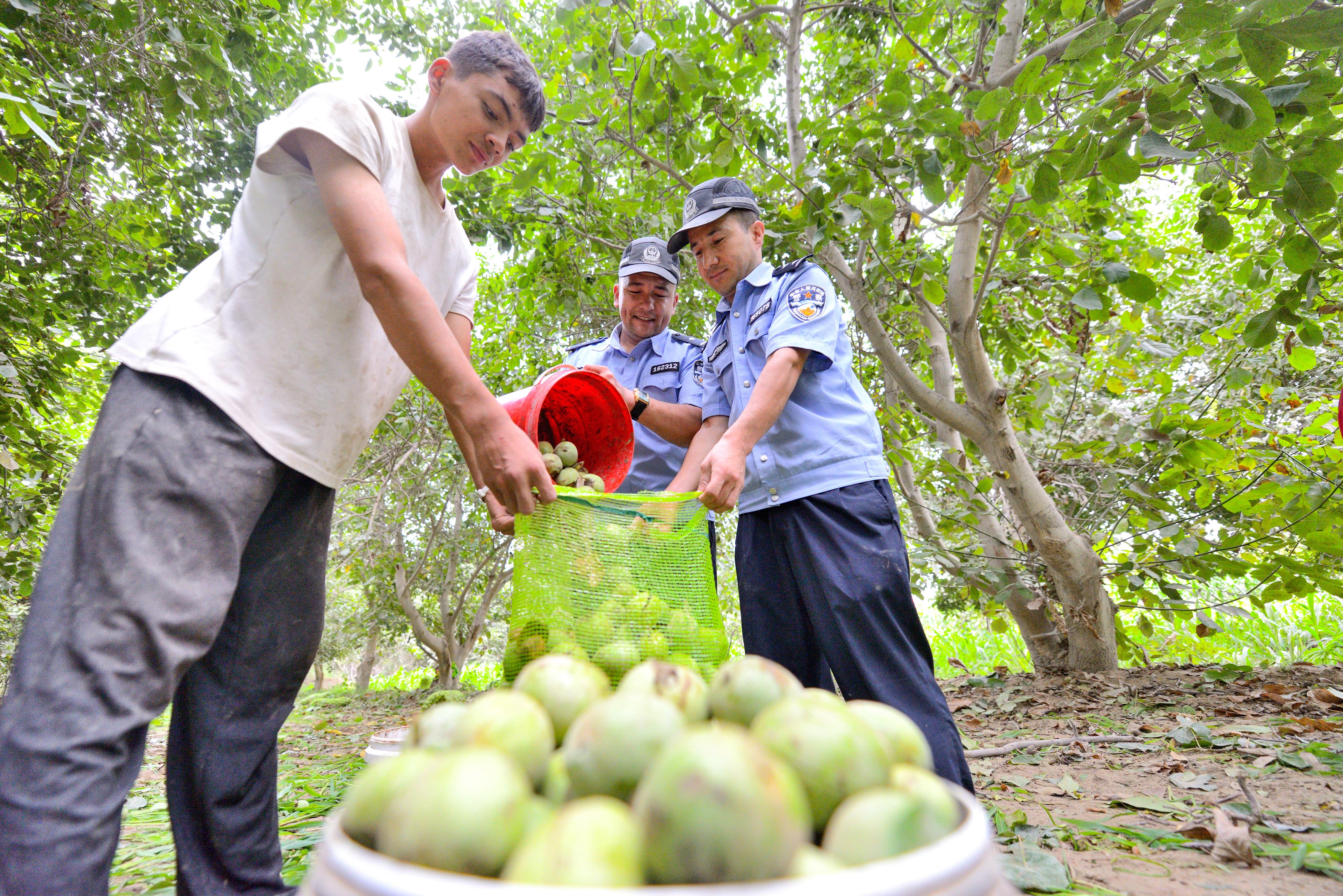 8月18日,在新疆葉城縣依力克其鄉(xiāng)的核桃園里,陣陣爽朗的招呼聲打破了田間的寧?kù)o。葉城縣公安局依力克其鄉(xiāng)派出所組建的助農(nóng)小分隊(duì)深入轄區(qū)核桃園,一邊幫群眾采收核桃,一邊開展普法宣傳活動(dòng),用貼心服務(wù)獲得群眾的紛紛點(diǎn)贊,成為秋日里一道溫暖的風(fēng)景線。