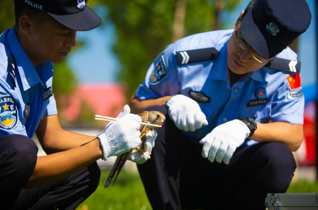 救助部門工作人員到達派出所后,確認被救助的鳥系國家二級保護動物——紅隼,隼科的小型猛禽之一。在工作人員的指導下,民警給紅隼投喂了水和食物。目前,這只紅隼已接受專業(yè)救助,待其恢復生存能力后將放歸大自然。