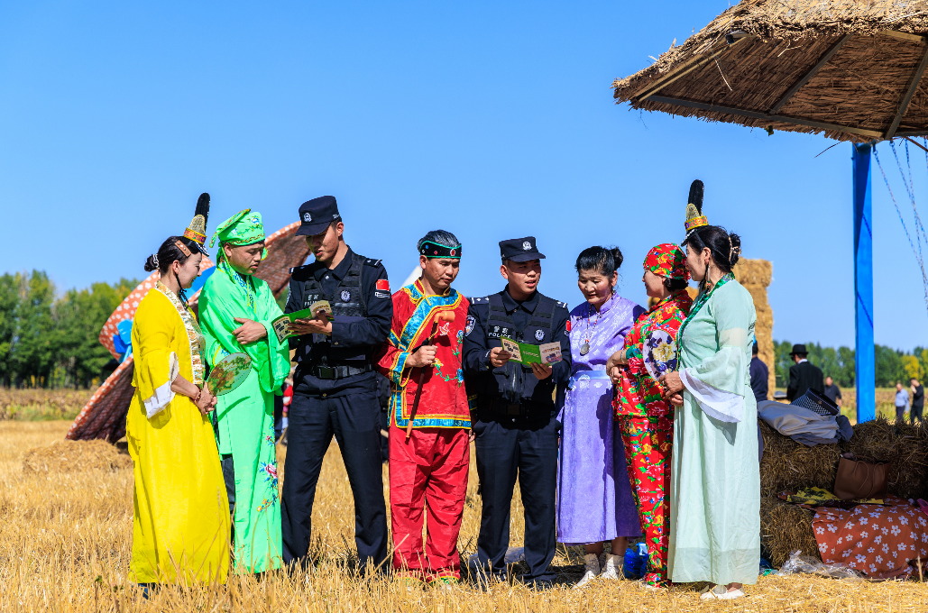 巍峨雪山映照著金色麥場(chǎng),天高云淡,風(fēng)景如畫(huà)。9月5日,新疆出入境邊防檢查總站伊犁邊境管理支隊(duì)察汗烏蘇邊境派出所組建的“普法小分隊(duì)”,將防范電信網(wǎng)絡(luò)詐騙和秋季防火知識(shí)送到轄區(qū)伊犁哈薩克自治州昭蘇縣察汗烏蘇鄉(xiāng)村民和游客身邊。別開(kāi)生面的普法活動(dòng)不僅讓安全知識(shí)深入人心,更在詩(shī)意的秋日美景中譜寫(xiě)了一曲警民情深的和諧樂(lè)章。