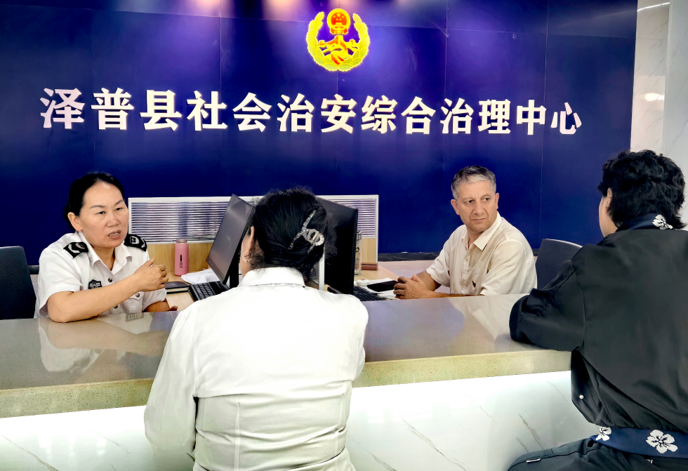 圖為9月18日,澤普縣綜治中心辦事大廳工作人員正在接待來訪群眾。潘從武 攝
