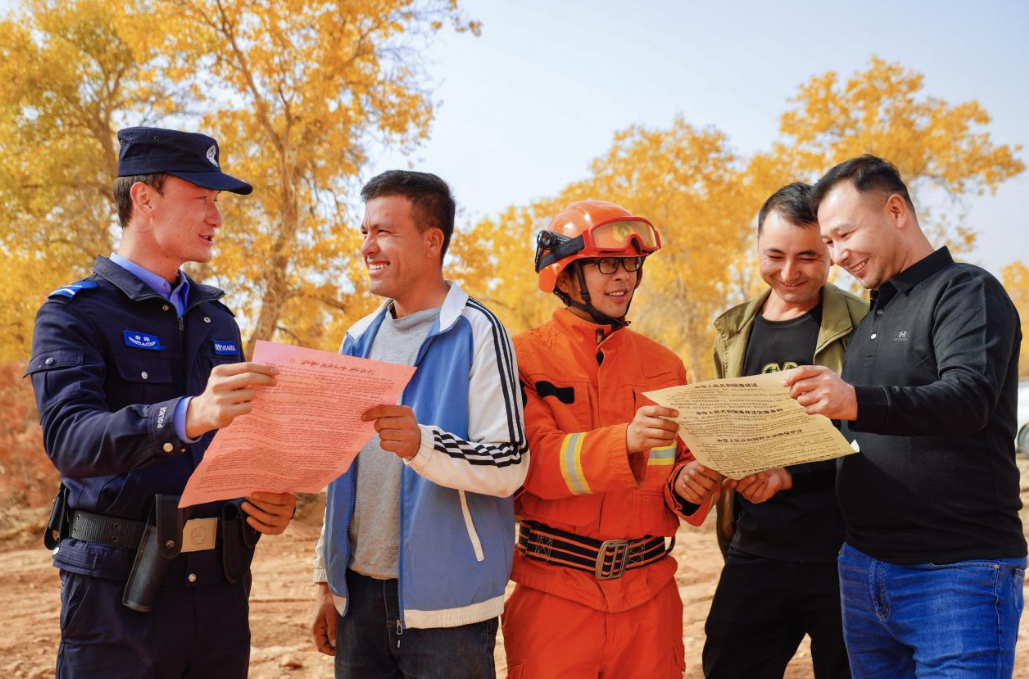 金秋十月,新疆溫宿縣共青團(tuán)鎮(zhèn)薩葉科普胡楊林的6.5萬畝胡楊,由綠轉(zhuǎn)黃,披上盛裝。10月18日,備受期待的溫宿2025胡楊生態(tài)文化旅游節(jié)在這片醉人的美景中如期拉開帷幕。為確保此次活動(dòng)安全、有序、順利進(jìn)行,溫宿縣公安局組建了強(qiáng)有力的安保隊(duì)伍,為八方來客營(yíng)造一個(gè)平安、祥和、歡樂的旅游環(huán)境。在全力維護(hù)秩序、保障安全的同時(shí),溫宿公安將服務(wù)群眾與普法宣傳融入安保工作之中,成為了金色胡楊林中另一道亮麗的“風(fēng)景線”。