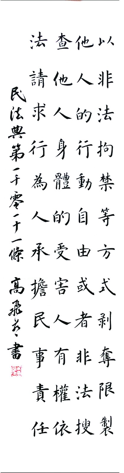 民法典第一千零一十一條 以非法拘禁等方式剝奪、限制他人的行動(dòng)自由,或者非法搜查他人身體的,受害人有權(quán)依法請(qǐng)求行為人承擔(dān)民事責(zé)任。
