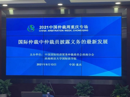2021年9月13日,“國際仲裁中仲裁員披露義務(wù)的最新發(fā)展”專題講座在重慶成功舉行。本次講座是2021中國仲裁周系列活動之一,由中國國際經(jīng)濟貿(mào)易仲裁委員會(貿(mào)仲)西南分會、西南政法大學(xué)國際法學(xué)院主辦。