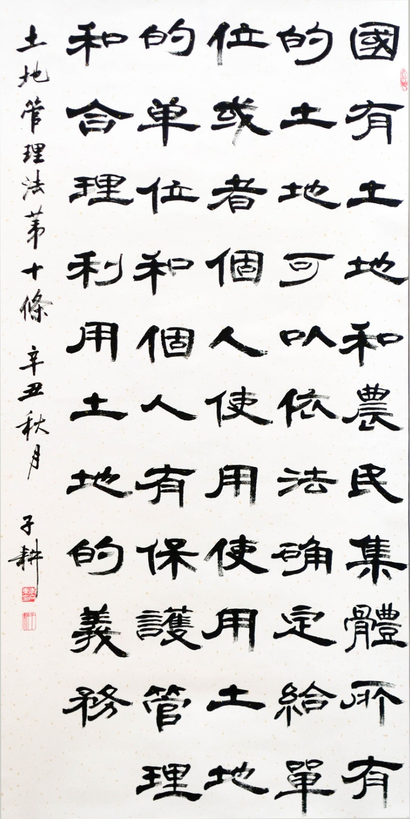 繼1600余位書(shū)法家參與書(shū)寫(xiě)《中華人民共和國(guó)民法典》全部1260條法條之后,法治日?qǐng)?bào)社聯(lián)合自然資源部法規(guī)司、自然資源部書(shū)畫(huà)研究會(huì)和北京昌平書(shū)法家協(xié)會(huì),將筆端對(duì)準(zhǔn)土地管理“一法一條例”,即《中華人民共和國(guó)土地管理法》和《中華人民共和國(guó)土地管理法實(shí)施條例》。