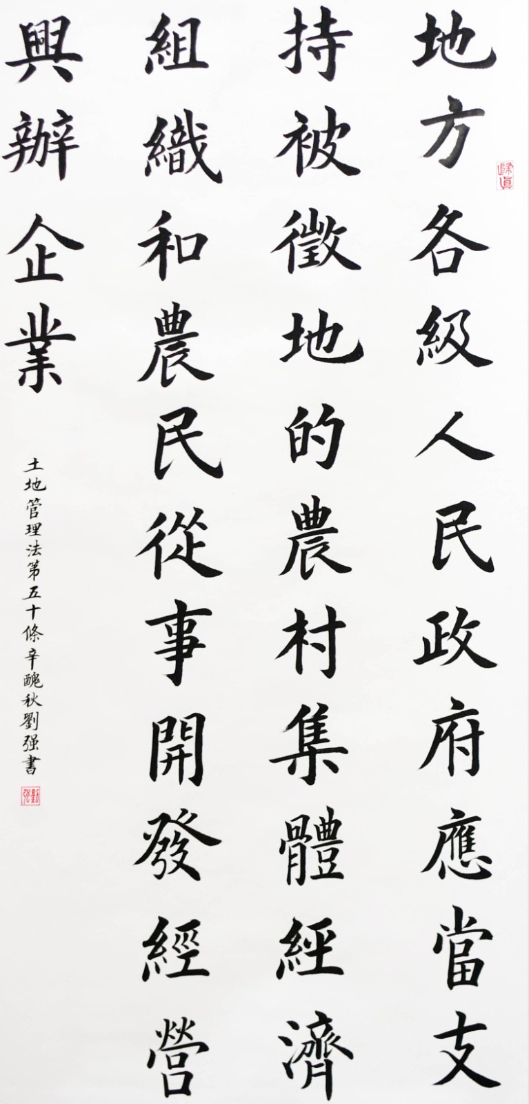 繼1600余位書法家參與書寫《中華人民共和國民法典》全部1260條法條之后,法治日報社聯(lián)合自然資源部法規(guī)司、自然資源部書畫研究會和北京昌平書法家協(xié)會,將筆端對準(zhǔn)土地管理“一法一條例”,即《中華人民共和國土地管理法》和《中華人民共和國土地管理法實施條例》。