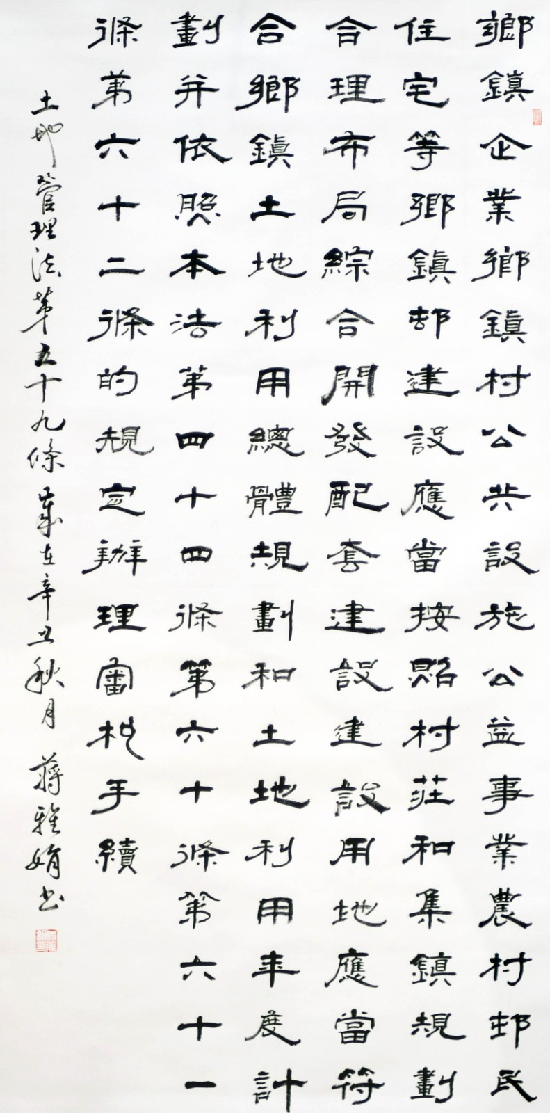 繼1600余位書(shū)法家參與書(shū)寫《中華人民共和國(guó)民法典》全部1260條法條之后,法治日?qǐng)?bào)社聯(lián)合自然資源部法規(guī)司、自然資源部書(shū)畫研究會(huì)和北京昌平書(shū)法家協(xié)會(huì),將筆端對(duì)準(zhǔn)土地管理“一法一條例”,即《中華人民共和國(guó)土地管理法》和《中華人民共和國(guó)土地管理法實(shí)施條例》。