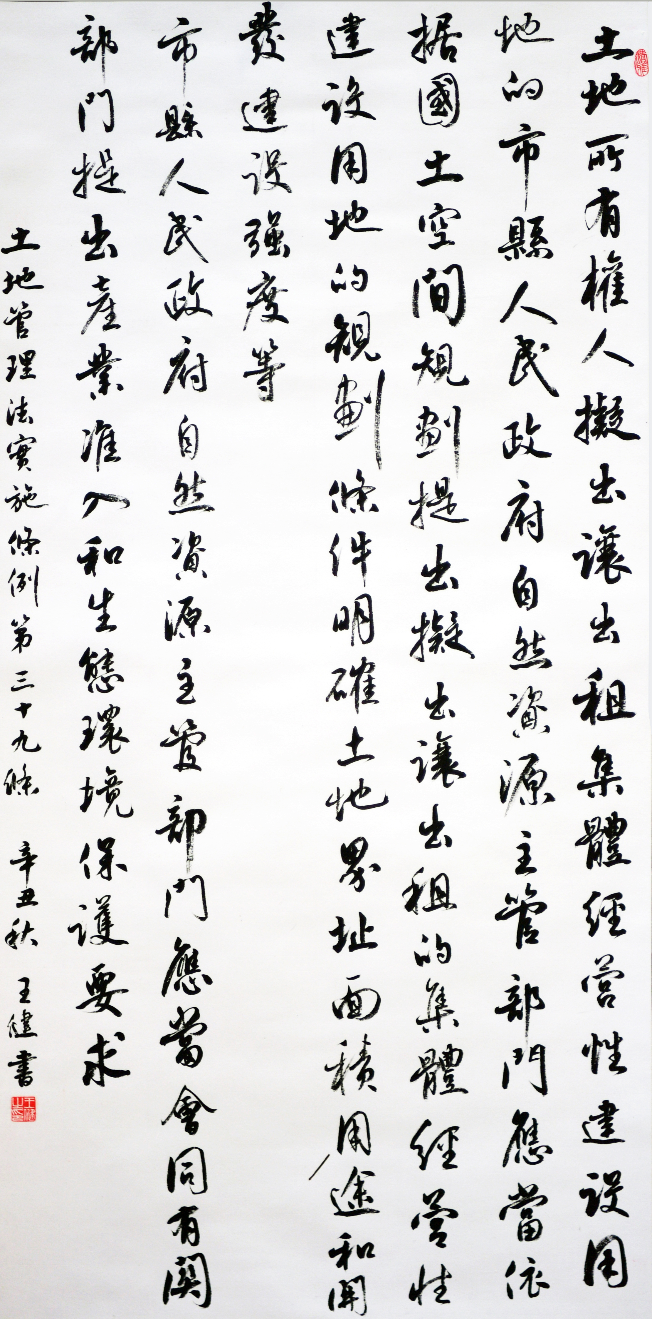 繼1600余位書法家參與書寫《中華人民共和國民法典》全部1260條法條之后,法治日報社聯合自然資源部法規(guī)司、自然資源部書畫研究會和北京昌平書法家協(xié)會,將筆端對準土地管理“一法一條例”,即《中華人民共和國土地管理法》和《中華人民共和國土地管理法實施條例》。