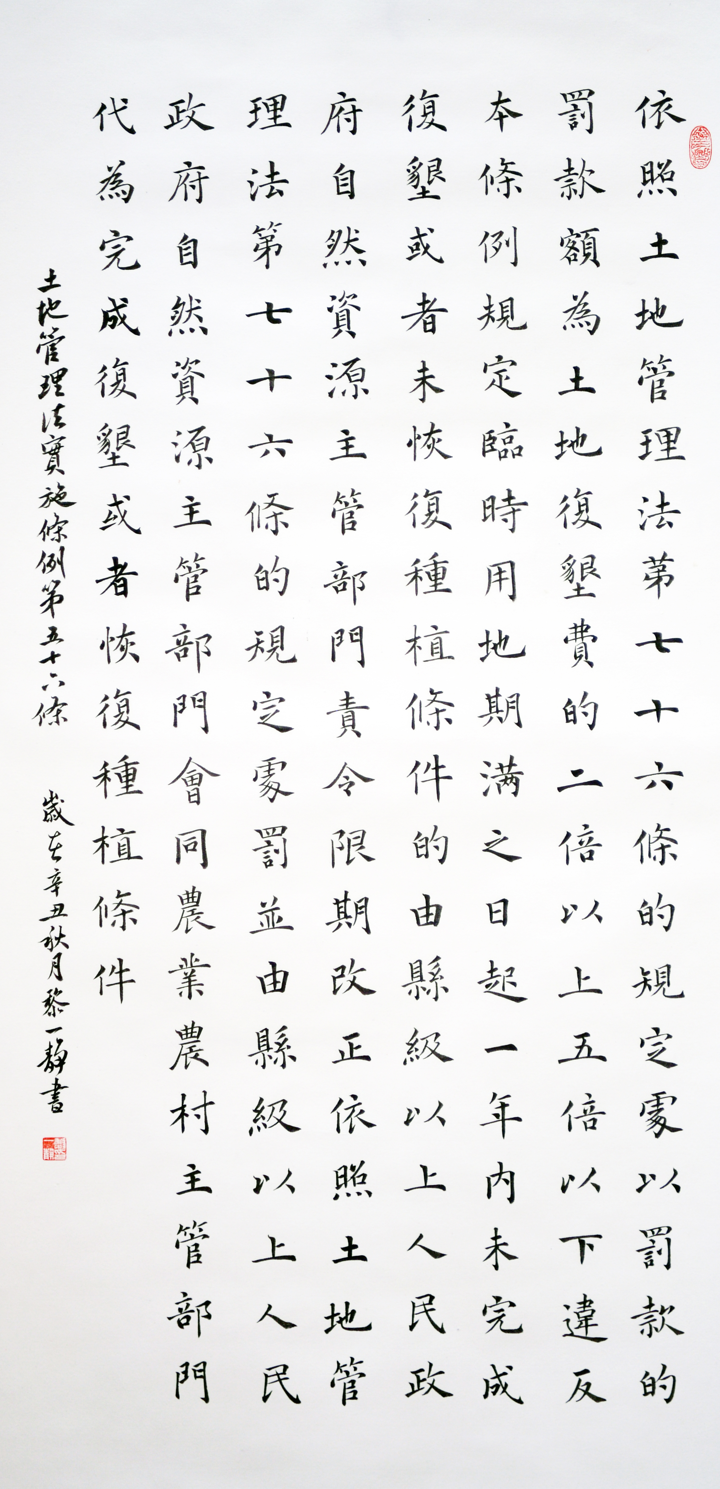繼1600余位書(shū)法家參與書(shū)寫(xiě)《中華人民共和國(guó)民法典》全部1260條法條之后,法治日?qǐng)?bào)社聯(lián)合自然資源部法規(guī)司、自然資源部書(shū)畫(huà)研究會(huì)和北京昌平書(shū)法家協(xié)會(huì),將筆端對(duì)準(zhǔn)土地管理“一法一條例”,即《中華人民共和國(guó)土地管理法》和《中華人民共和國(guó)土地管理法實(shí)施條例》。