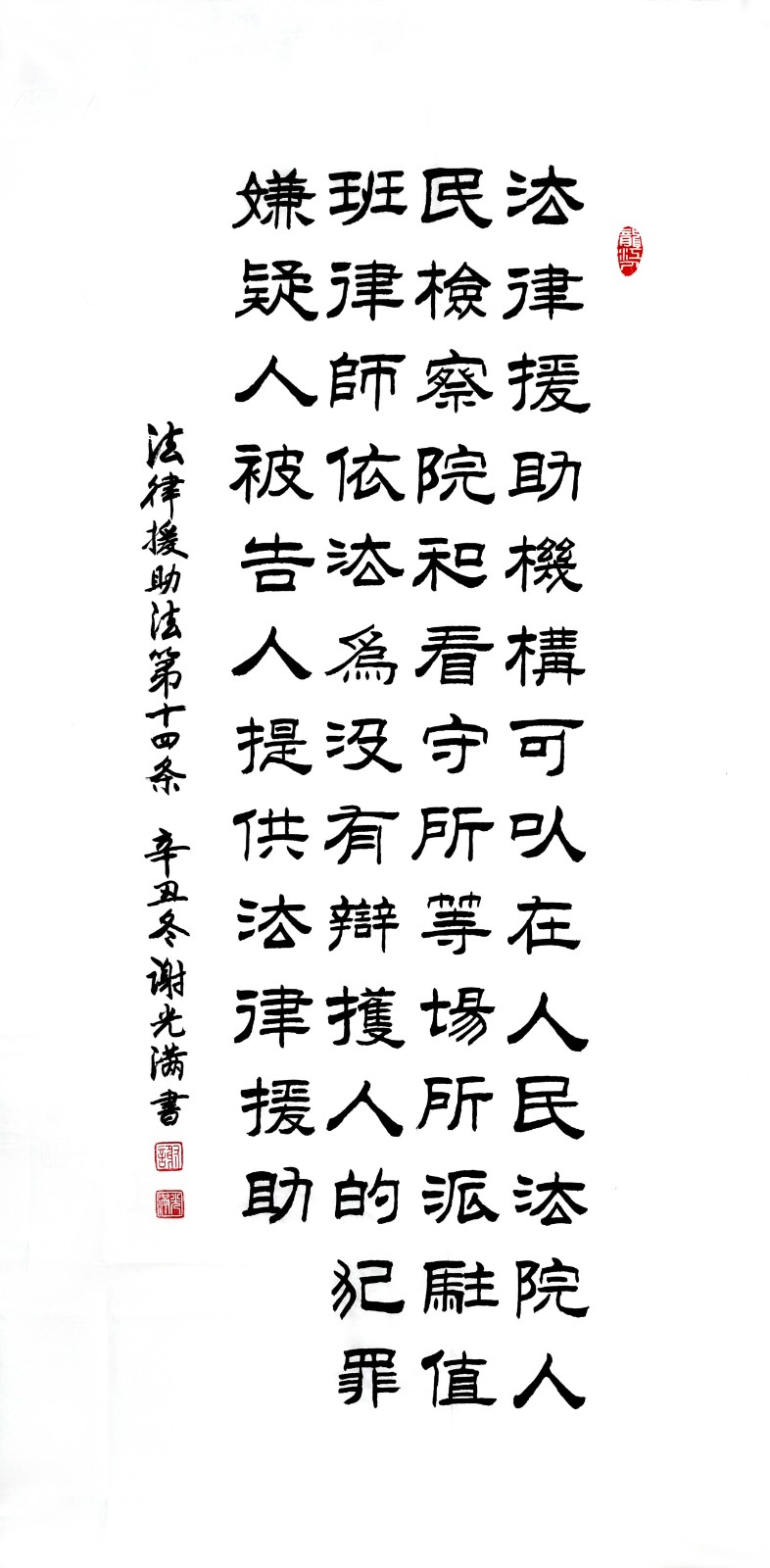 謝光滿,司法部詩書畫協會會員,北京市硬筆書法協會會員。