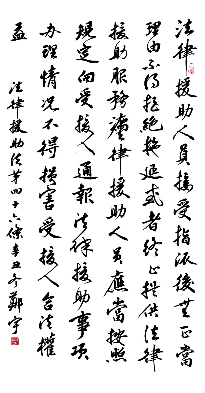 法律援助法第四十六條 法律援助人員接受指派后,無(wú)正當(dāng)理由不得拒絕、拖延或者終止提供法律援助服務(wù)。