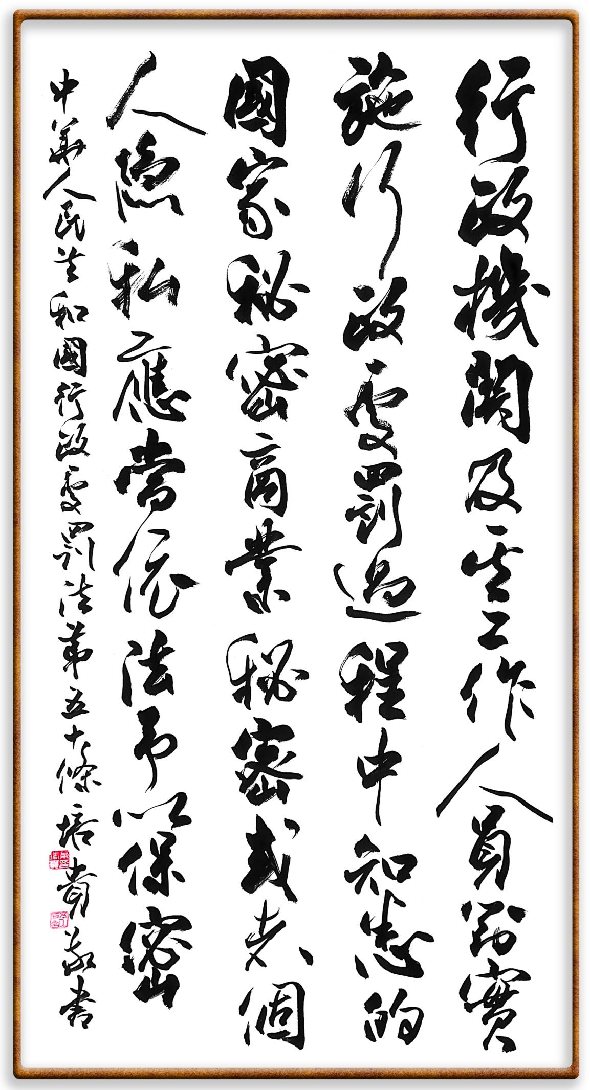 繼《中華人民共和國(guó)民法典》《中華人民共和國(guó)土地管理法》《中華人民共和國(guó)土地管理法實(shí)施條例》《中華人民共和國(guó)法律援助法》之后,法治日?qǐng)?bào)社聯(lián)合北京市司法局、北京書法家協(xié)會(huì),將筆端對(duì)準(zhǔn)《中華人民共和國(guó)憲法》和《中華人民共和國(guó)行政處罰法》。