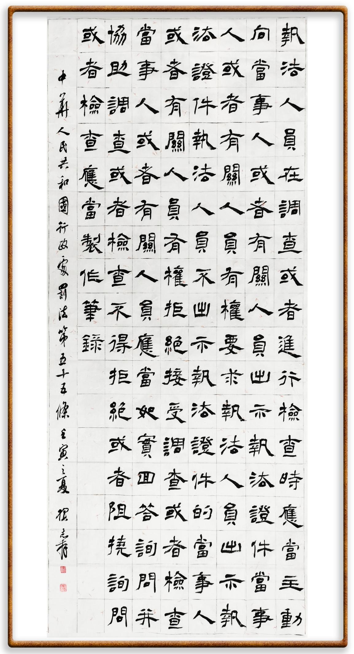 繼《中華人民共和國民法典》《中華人民共和國土地管理法》《中華人民共和國土地管理法實(shí)施條例》《中華人民共和國法律援助法》之后,法治日?qǐng)?bào)社聯(lián)合北京市司法局、北京書法家協(xié)會(huì),將筆端對(duì)準(zhǔn)《中華人民共和國憲法》和《中華人民共和國行政處罰法》。