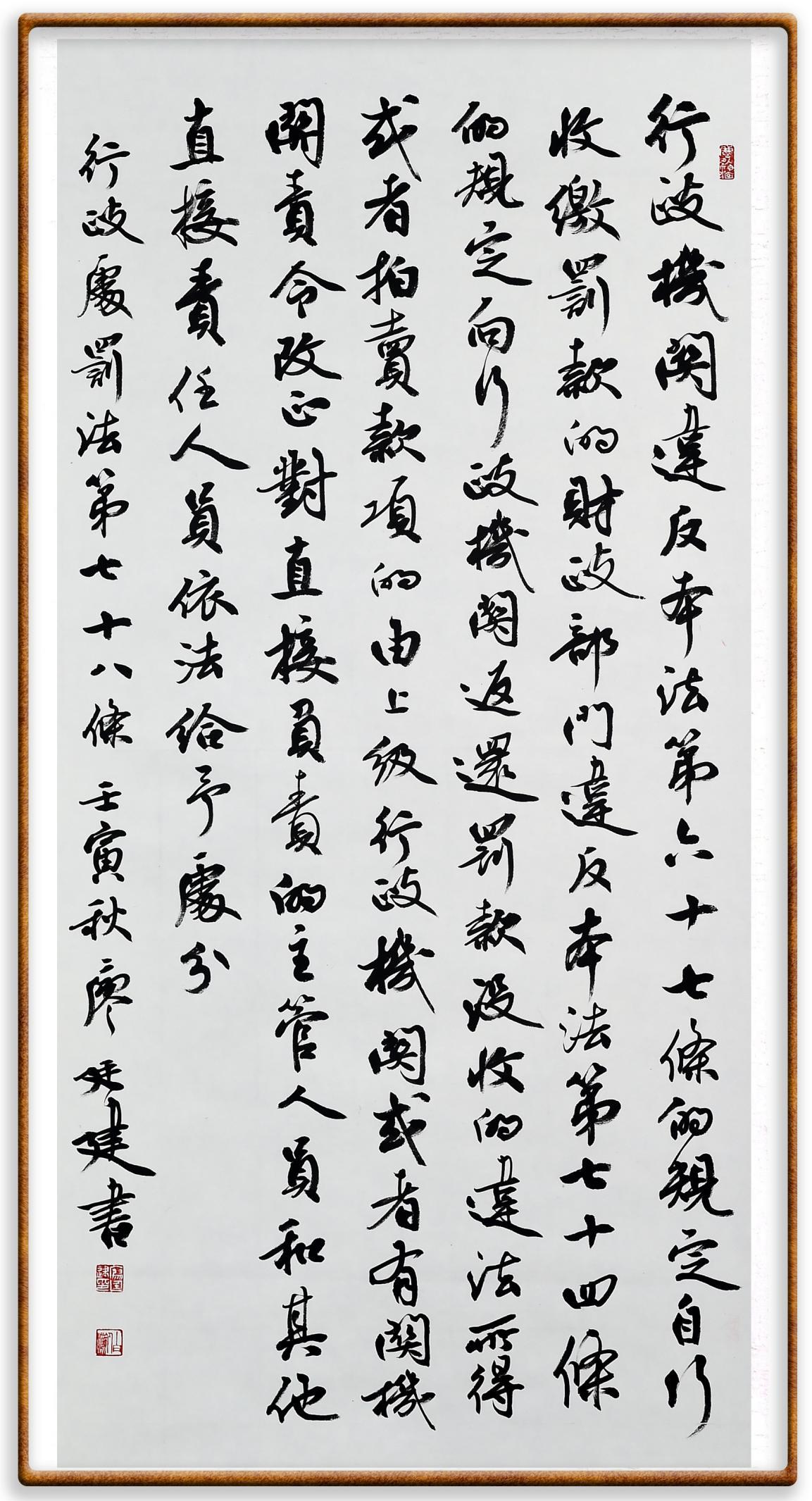 繼《中華人民共和國(guó)民法典》《中華人民共和國(guó)土地管理法》《中華人民共和國(guó)土地管理法實(shí)施條例》《中華人民共和國(guó)法律援助法》之后,法治日?qǐng)?bào)社聯(lián)合北京市司法局、北京書(shū)法家協(xié)會(huì),將筆端對(duì)準(zhǔn)《中華人民共和國(guó)憲法》和《中華人民共和國(guó)行政處罰法》。