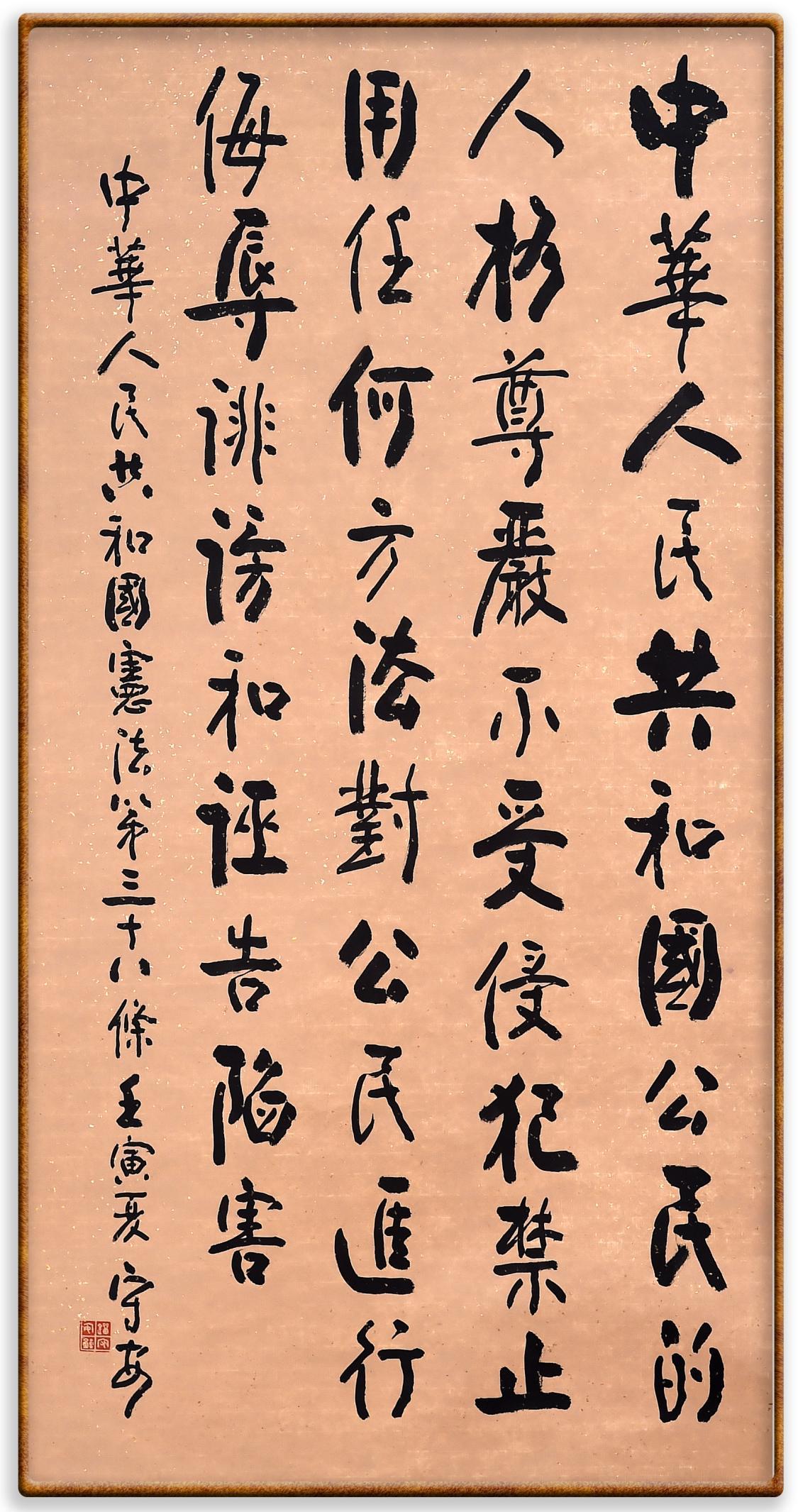 繼《中華人民共和國(guó)民法典》《中華人民共和國(guó)土地管理法》《中華人民共和國(guó)土地管理法實(shí)施條例》《中華人民共和國(guó)法律援助法》之后,法治日?qǐng)?bào)社聯(lián)合北京市司法局、北京書(shū)法家協(xié)會(huì),將筆端對(duì)準(zhǔn)《中華人民共和國(guó)憲法》和《中華人民共和國(guó)行政處罰法》。