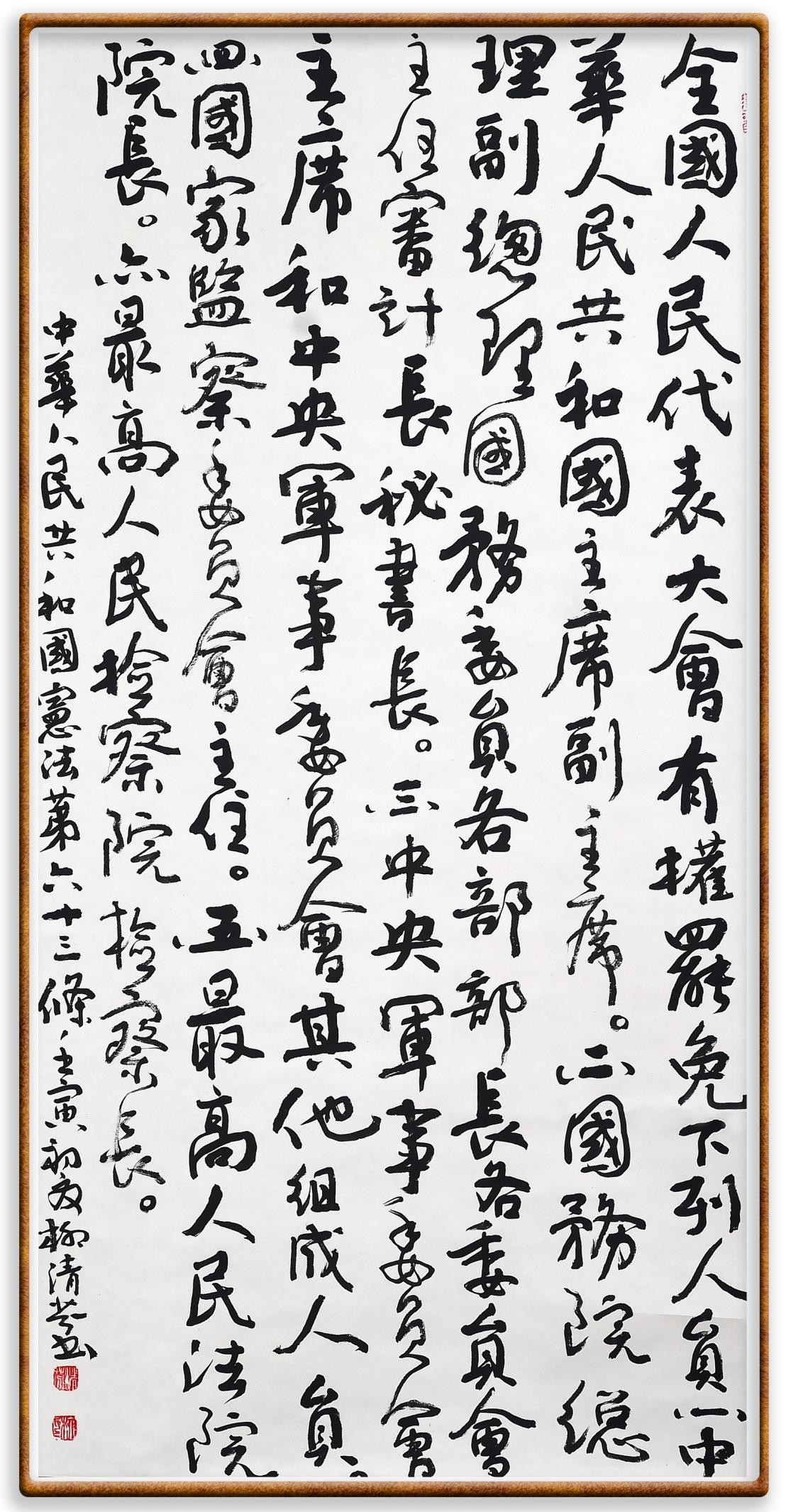 繼《中華人民共和國民法典》《中華人民共和國土地管理法》《中華人民共和國土地管理法實施條例》《中華人民共和國法律援助法》之后,法治日報社聯合北京市司法局、北京書法家協會,將筆端對準《中華人民共和國憲法》和《中華人民共和國行政處罰法》。