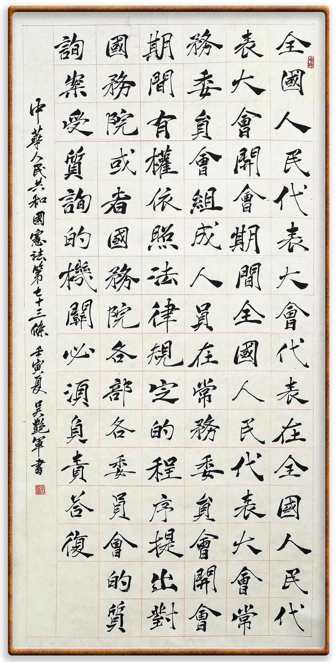 繼《中華人民共和國民法典》《中華人民共和國土地管理法》《中華人民共和國土地管理法實施條例》《中華人民共和國法律援助法》之后,法治日報社聯(lián)合北京市司法局、北京書法家協(xié)會,將筆端對準《中華人民共和國憲法》和《中華人民共和國行政處罰法》。