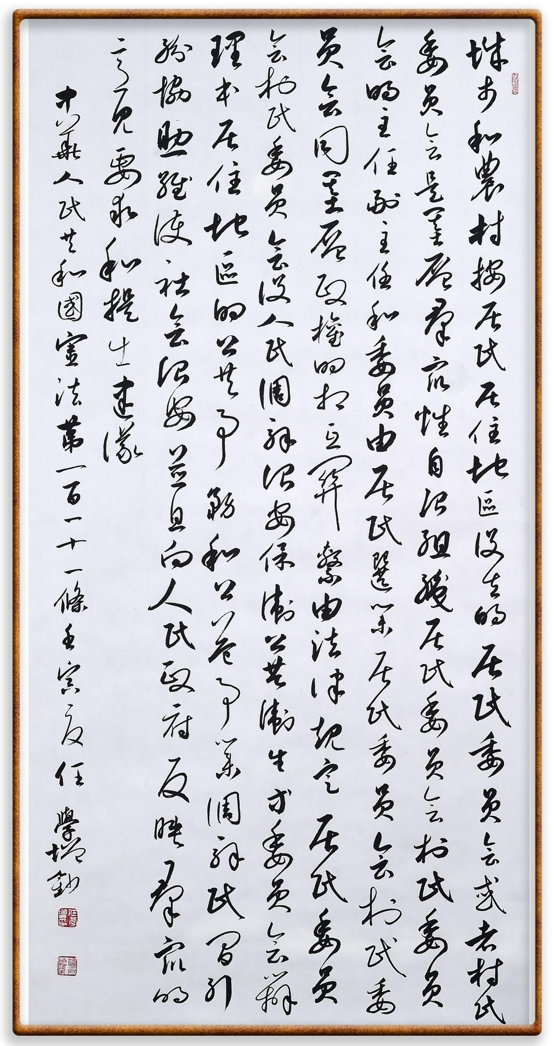 繼《中華人民共和國民法典》《中華人民共和國土地管理法》《中華人民共和國土地管理法實(shí)施條例》《中華人民共和國法律援助法》之后,法治日報(bào)社聯(lián)合北京市司法局、北京書法家協(xié)會,將筆端對準(zhǔn)《中華人民共和國憲法》和《中華人民共和國行政處罰法》。