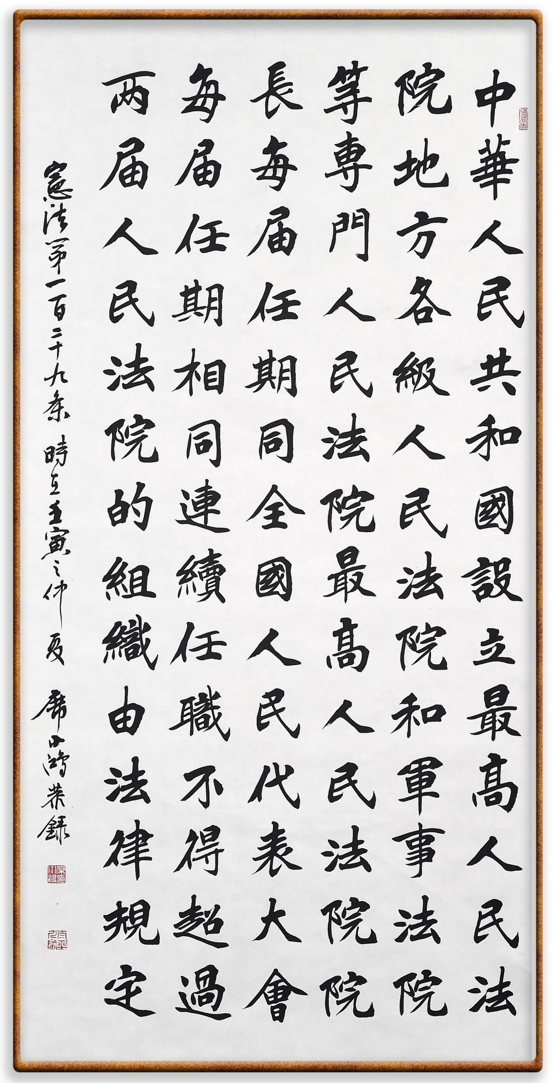 繼《中華人民共和國民法典》《中華人民共和國土地管理法》《中華人民共和國土地管理法實施條例》《中華人民共和國法律援助法》之后,法治日報社聯(lián)合北京市司法局、北京書法家協(xié)會,將筆端對準(zhǔn)《中華人民共和國憲法》和《中華人民共和國行政處罰法》。