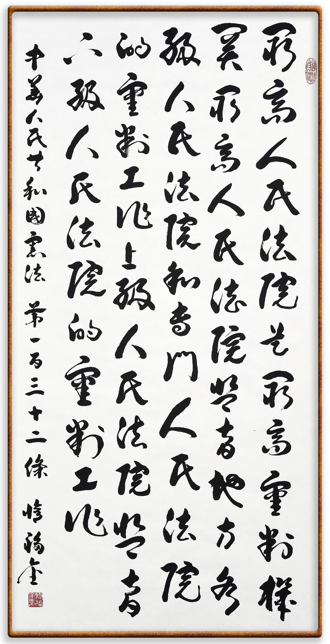繼《中華人民共和國(guó)民法典》《中華人民共和國(guó)土地管理法》《中華人民共和國(guó)土地管理法實(shí)施條例》《中華人民共和國(guó)法律援助法》之后,法治日?qǐng)?bào)社聯(lián)合北京市司法局、北京書(shū)法家協(xié)會(huì),將筆端對(duì)準(zhǔn)《中華人民共和國(guó)憲法》和《中華人民共和國(guó)行政處罰法》。