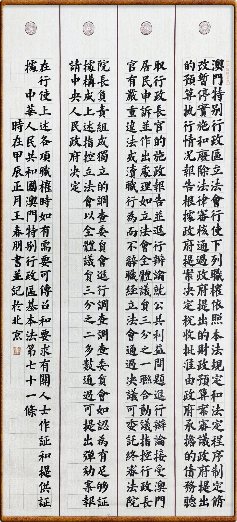 澳門基本法第七十一條 澳門特別行政區(qū)立法會行使下列職權(quán):
