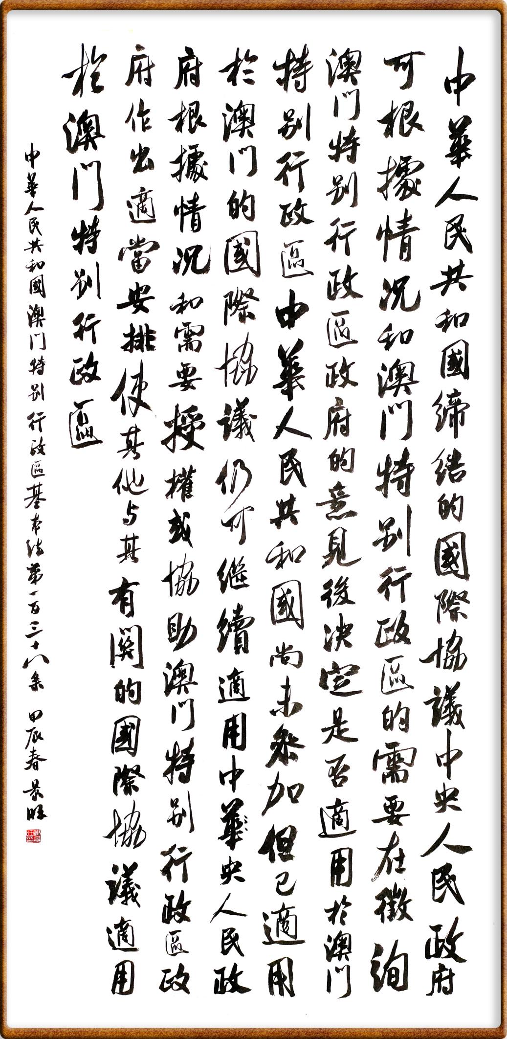 澳門基本法第一百三十八條 中華人民共和國締結(jié)的國際協(xié)議,中央人民政府可根據(jù)情況和澳門特別行政區(qū)的需要,在征詢澳門特別行政區(qū)政府的意見后,決定是否適用于澳門特別行政區(qū)。